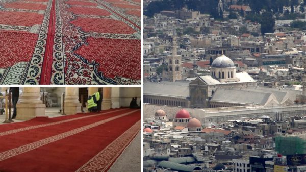 সিরিয়ার রাজধানী দামেস্কের ঐতিহাসিক উমাইয়া মসজিদে নতুন কার্পেট বিছানো হয়েছে। তুরস্কের গাজিয়ানতেপের দক্ষ কারিগররা অত্যন্ত যত্নসহকারে এই কার্পেটগুলো তৈরি করেছেন, যাতে মসজিদের মূল স্থাপত্য ও পরিবেশের সঙ্গে সামঞ্জস্য বজায় থাকে।